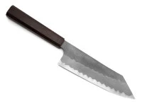 , bietet ein hervorragendes Schärfepotenzial. Der Schneidkern besteht aus Aogami Super, dem blauen Papierstahl. Der Stahl ist ein echter japanischer Kohlenstoffstahl und kann sehr hart geschmiedet werden. Er zeichnet sich durch feinstes Martensit – metastabiles Gefüge – aus, das für höhere Härte und eine ausgezeichnete Schärfe sorgt. Ein weiterer Vorzug ist, dass Aogami super trotz hoher Härte leicht geschliffen werden kann und aufgrund des hohen Anteils von Wolfram eine sehr gute Standfestigkeit zeigt. Mit diesem Schneidkern bieten die Messer dieser Serie also eine außergewöhnlich hohe Schärfe, Schneidleistung und Beständigkeit.