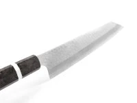 , auch Chefmesser genannt, ist zum Schneiden von größeren Stücken Fleisch, Fisch oder Gemüse gedacht. Die ca. 240 mm lange Klinge wurde aus SG2 Stahl gefertigt. Der renommierte Stahlhersteller Takefu Special Steel bezeichnet den Stahl als Super Gold 2 (SPG2). Es ist ein pulvermetallurgischer, rostfreier Stahl mit einigen Besonderheiten. Messer-Schmiede und Messer-Liebhaber schätzen besonders die homogene, feine Struktur, den hohen Härtegrad von 63