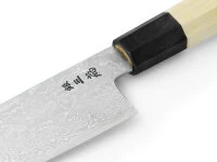 aus Ginsan Silver-3 Stahl und 33 Lagen Damaststahl. Hergestellt von Meister Suogo Yamatsuka, der bekannt dafür ist, außergewöhnliche, japanische Messer zu produzieren. Er hat sich auf die Verarbeitung von Ginsan Silver-3 Stahl spezialisiert. Die Messer sind korrosionsbeständig und haben ein extrem hohes Schärfepotenzial. Das Messer ist beidseitig geschliffen, hat einen Vollholz Griff aus Magnolie und eine Zwinge aus Büffelhorn.