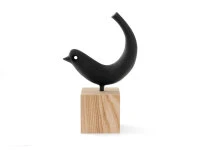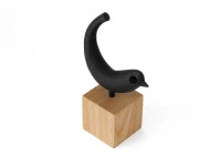 Die dekorative Figur Tori steht stolz auf einem Holzsockel und strahlt pfiffigen Optimismus aus.