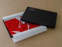 wird zur Tasche oder zum Taschentuch. Es ist eine kreative, nachhaltive Verpackung für Geschenke, Flaschen oder seine eigene Lunchbox. Es kann ein Tischtuch, ein Set oder eine Serviette sein. Größere Tücher eignen sich auch hervorragend als dekorative Schals. Und wenn man es nicht braucht, ist es schnell kompakt verstaut.