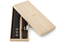 Japanischer Handfächer für Herren, die cool und souverän durch den Sommer kommen möchten. Der Japanfächer Kuroi taki wird mit schwarzem Etui in einer schönen Holzbox geliefert. Sein Auftreten ist sehr markant, was nicht zuletzt daher rührt, dass der Handfächer komplett aus Bambus gefertigt ist. Die edlen, dekorativen Schnitzereien wirken modern und unterstützen die Kühlung durch den kräftigen Wind, den die 40 cm Spannweite locker aus dem Handgelenk produziert. Ein Herren-Fächer der es in sich hat, ein typisches, männliches Accessoire für Selbstbewusste.