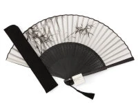 Handfächer Shiraji – ein Hauch von Eleganz und Lebenskraft. Entdecken Sie die Kunst der sanften Kühlung mit unserem Handfächer Shiraji. Mit einer Steglänge von etwa 22,5 cm, gefertigt aus edlem Bambus, verbindet dieser Fächer traditionelle Handwerkskunst mit moderner Eleganz. Die Fächerknochen sind mit schönen Schnitzereien verziert. Der Fächerbezug ist aus feiner Seide und trägt ein Geheimnis der Natur in sich – das Motiv des wachsenden Bambus, ein uraltes Symbol für Stärke und Lebenskraft, das sich elegant in den Himmel streckt. Die ästhetische Tuschemalerei macht diesen Fächer zu einem unverzichtbaren Accessoire für Momente der Ruhe und Entspannung. Die beiliegende Fächertasche aus reiner Baumwolle ist die stilvolle Aufbewahrung und gleichzeitig treuer Begleiter für den Alltag oder besondere Anlässe. Der Handfächer ist nicht nur ein Werkzeug zur Erfrischung, sondern auch ein Ausdruck von Kultur und einer tiefen Wertschätzung für das traditionelle Handwerk. Mit dem Handfächer Shiraji halten Sie ein Stück Poesie und Lebenskunst in Ihren Händen. Der Fächer werden zusammen mit einem passenden Etui in einer Kartonbox geliefert.