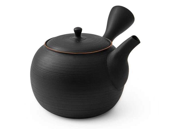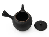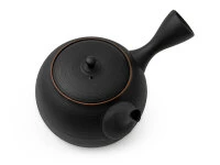 von Gyokko aus Tokoname, Japan. Die japanische Teekanne verfügt über ein integriertes Keramiksieb. Die Teekanne und das Sieb wurden vom Meister Gyokko aus natürlichem Ton auf der Töpferscheibe gefertigt. Gyokko ist einer der bekanntesten Meister dieser Kunst. Er verwendet ausschließlich natürlichen, mineralstoffreichen Ton aus Tokoname, der bei hohen Temperaturen gebrannt werden kann. Seine sehr detaillierten Muster sind oft Vorlage für Kopierversuche, was in Japan als großes Kompliment gilt. Die schöne Teekanne wiegt ca. 280 Gramm und fasst ungefähr 580 ml. Sie ist sehr gut mit den Teeschalen Sendan Kuro von Meister Gyokko kombinierbar.