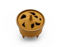 Dies ist die einfachste Art, seine Räume mit aromatischen Düften zu füllen. Füllen Sie etwas Sand – alternativ Granulat oder Asche – in das Gefäß. Räucherkegel und Räucherspiralen legen Sie bitte direkt auf den Sand, zünden diese an und schließen den Deckel. Die Räucherstäbchen arrangieren Sie am besten bei geschlossenem Deckel durch die dafür vorgesehenen Öffnungen.