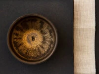 Alle Teile des Keramik Künstlers Shinobu Hashimoto sind künstlerisch hergestellte Unikate. Leichte Abweichungen von der Abbildung sind möglich und gewünscht. Vor Verwendung können Sie die Schale einige Zeit wässern.