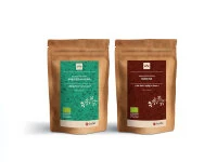 Tee Geschenk mit zwei Bio Grüntees aus Japan, je 50 g, gesamt 100 g, Verpackung und Gruß-Karte. Grüner Tee Kabusecha Asuka, halb-beschattet, aus Kagoshima, Japan. Ein Juwel mit geringem Ernteertrag, langsam wachsend, und vielen gesunden Inhaltsstoffen aus kleinem Tee-Garten. Nicht aromatisiert. Herzhafter Geschmack mit frischer Süße und nussigen Anklängen. Anregende und gesundheitsfördernde Wirkung. Dunkelgrüne Blätter, filigrane Struktur. Der sanft anregende Muntermacher für den ganzen Tag. Grüner Tee Kukicha, Bio, aus Uji/Kyoto, Japan, eines der wichtigsten Anbaugebiete für hochwertigen Tee. Nicht aromatisiert. Ein würziger Kukicha mit duftigem Aroma. Sehr wenig Koffein, ein idealer Grüner Tee für den Abend, starker Lieferant von Mineralstoffen und Spurenelementen. Sehr gut verträglich, auch bei Koffein-Empfindlichkeit.