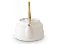 Teeset, bestehend aus Teekanne und 5 Teeschalen. Design von Tatsumi Kato (ceramic japan), traditionell von Hand gefertigt, in modernem Design. Die Manufaktur hat ihren Sitz in Seto, Präfektur Aichi. Dort, wo traditionell Töpferware hergestellt wird, da diese Region mit einem besonders hochwertigen Töpferkitt ausgestattet ist. Es ist das einzige Töpferzentrum in Japan, das eine Glasur verwendet, die seit der Kamakura-Zeit, seit über 1000 Jahre, eingesetzt wird. Die vielfach prämierte Manufaktur zeichnet sich durch ihre bewusst enge Zusammenarbeit von modernen Designern mit traditionellen Kunsthandwerkern aus. Die Ergebnisse sind Produkte, die die Welt noch nicht gesehen hat. Neue Formen von hoher Ästetik aber auch höchstem Gebrauchswert und bester Qualität. Die Unterschiede zu preiswerter Massen- und Industrieware ist nicht nur sichtbar sondern – so Tee-Kenner – auch im Geschmackserlebnis deutlich erfahrbar.