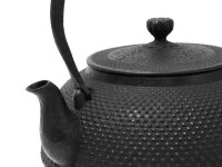 Arare gehört zu den bekanntesten und beliebtesten Mustern bei Tetsubins. Bei Nanbu-Tesubins werden Körner in der Form in regelmäßigen Abständen aneinandergereiht und mit einem speziellen Werkzeug von Hand so platziert, dass dieses schöne Muster entsteht. Der Tetsubin Torayama Nanbu Hiramaru Arare ist ein komplett von Hand gefertigter, edler Nanbu-Tetsubin von Torayama Studios. Eine echte Rarität auf dem europäischen Markt. Sein traditionelles, feines Arare Design erzählt japanische Geschichte. Sehr hohe, kontrollierte Materialqualität. Der Tetsubin wird in über 60 Arbeitsschritten aufwändig von Hand beim bekannten, kleinen Hersteller Torayama hergestellt. In solchen Tetsubin kochen die bekanntesten Teemeister das Wasser bei der Teezeremonie, aber auch zur alltäglichen Zubereitung von grünem Tee werden in Japan und bei Tee-Enthusiasten in Europa solche Tetsubin verwendet. Das Teewasser gewinnt aus dem Kessel Eisen und verbessert den Geschmack des Tees.