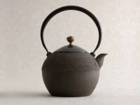 Echte Handarbeit aus Yamagata von Chushin Kobo. Tetsubin mit Arare Muster in moderner Form. Der Wasserkessel hat 1,5 Liter Fassungsvermögen und einem lackierten Kupferdeckel. Sehr hochwertige Ausführung aus aufwendigem Sandguss. Bekannt ist der sogenannte Satetsu-Guss für seine sehr hohe Materialdichte und den geringeren Kohlenstoffanteil. Durch die Yamagata Produktionstechnik ist es außerdem möglich, Tetsubin in weniger Teilen zu gießen, was zur Folge hat, dass die Gießform für diese exklusiven, von Teemeistern sehr geschätzten Produkte nur einmalig verwendet werden kann. Der Tetsubin ist unbeschichtet, wird aber durch den berühmten